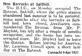 1920 Sep 20. Freeman's Journal reports that a Mr Moylett had been given 24 hours notice by the police to vacate his private reside "The Retreat". He in fact later made WS767 which gives a graphic, but factually weak, account of the ADRIC taking over The Retreat.