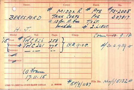 1918 Sep 11. The undermentioned, from Officer Cadet Units, to be 2nd Lts.Midd'x R.— Hugh Joseph Beresford.
