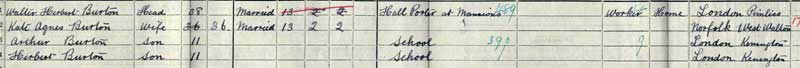 1927 Electoral Roll at Wandsworth with Martha Alice Burton at Chestnut Grove.