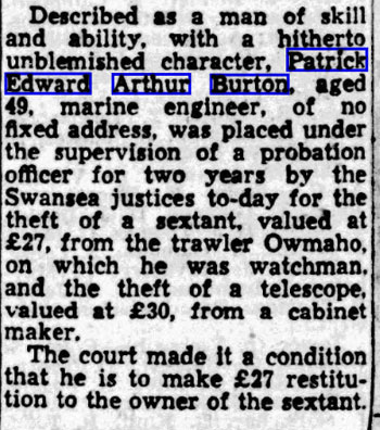 Registry of Shipping and Seamen: Database of World War II Medals issued to Merchant Seamen. Burton Arthur Edward Patrick R504739.
