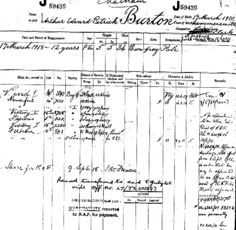 He has a RN record as a Seaman (Nat Arch) and appears to have gone on to a commission in the RAF at the end of the war.