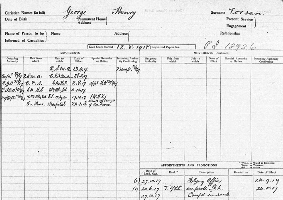 1917 Apr 17 Posted to 2 SMA. RFC record exists . He was a 3rd Class Air Mechanic in RFC when selected for a commission. When his address is 15 Rusholme Park Cres, Toronto, Canada, with his mother listed as next of kin.