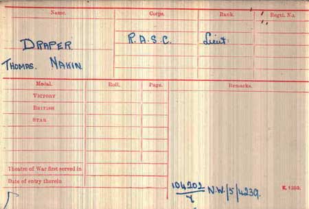 1896 Sep 21 Born Downham, Norfolk. Son of Thomas Makin Draper, a physician and surgeon