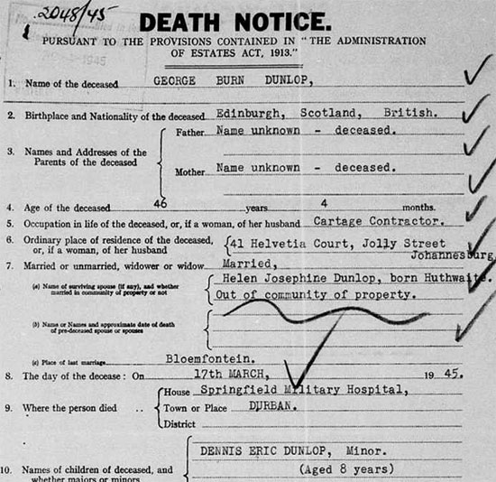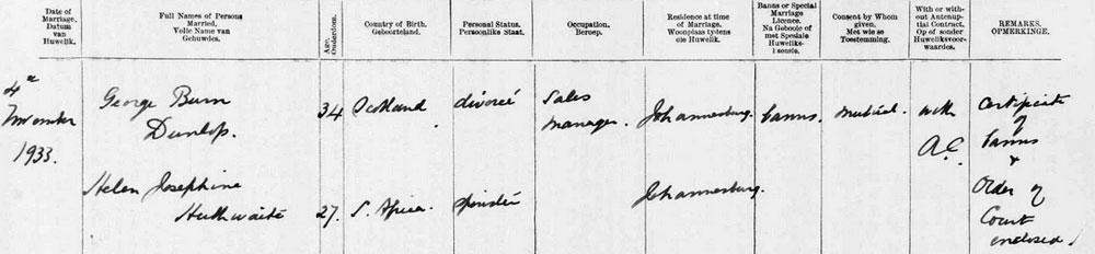 1933 Nov 4 married Helen Josephine Huthwaite in J'burg