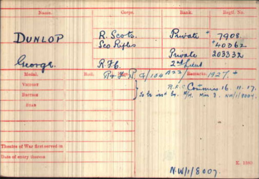 1916 Aug. G Dunlop 2908 (not 7908) A Company 9th Royal Scots to the western front August 1916.