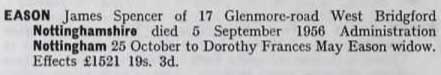 1956 Sep 5. Died Basford, Nottinghamshire. Age 62