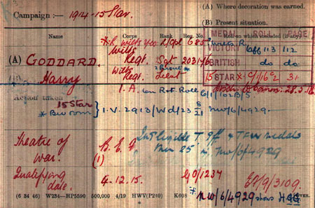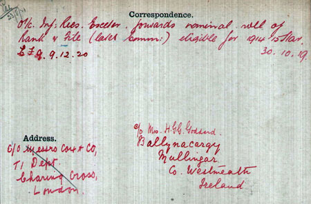 1920 Mar 17. NOTE.—I.A.R.O.—In Lon. Gaz. notifn. dated . 3rd Dec.. 1920, granting temporary commissions in the I.A.R.O. to certain officers, under " To be Captains " delete the entry regarding Harry Goddard, and under " To be Lieutenants " insert " Harry Gerard Gordon Goddard. 17th Mar. 1920, but to rank from 29th May 1919."