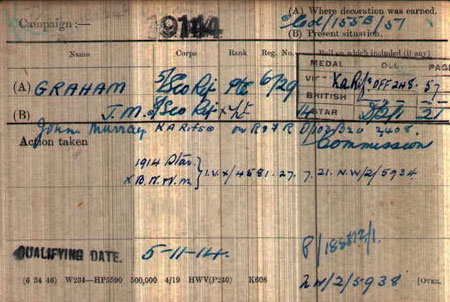 1921 Dec 12. Gazetted out of 8th Cameronians, Lt J M Graham