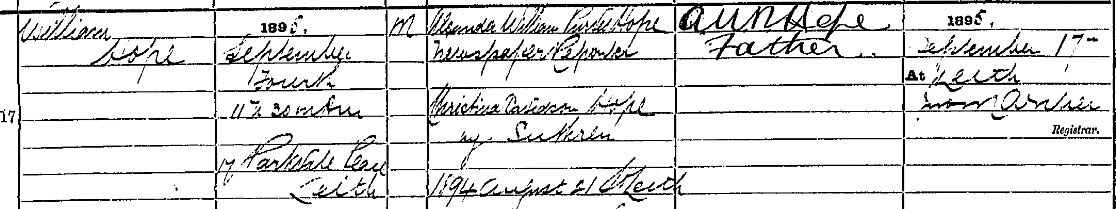 1895 Sep 4. Born son of Alexander William Purves Hope, a Newspaper Reporter