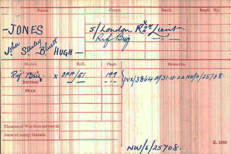 1918 Jan 30 Commissioned 2nd Lt in Rifle Brigade. John Stanley Bluett Hugh-Jones