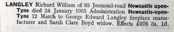 1955 Jan 24. Died Newcastle upon Tyne aged 57