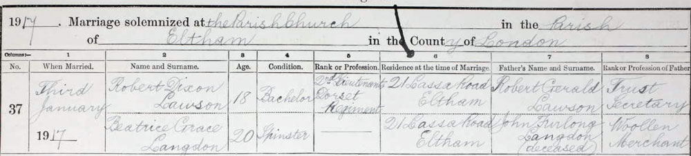 1917 Jan 3 Married in London to Beatrice G Langdon