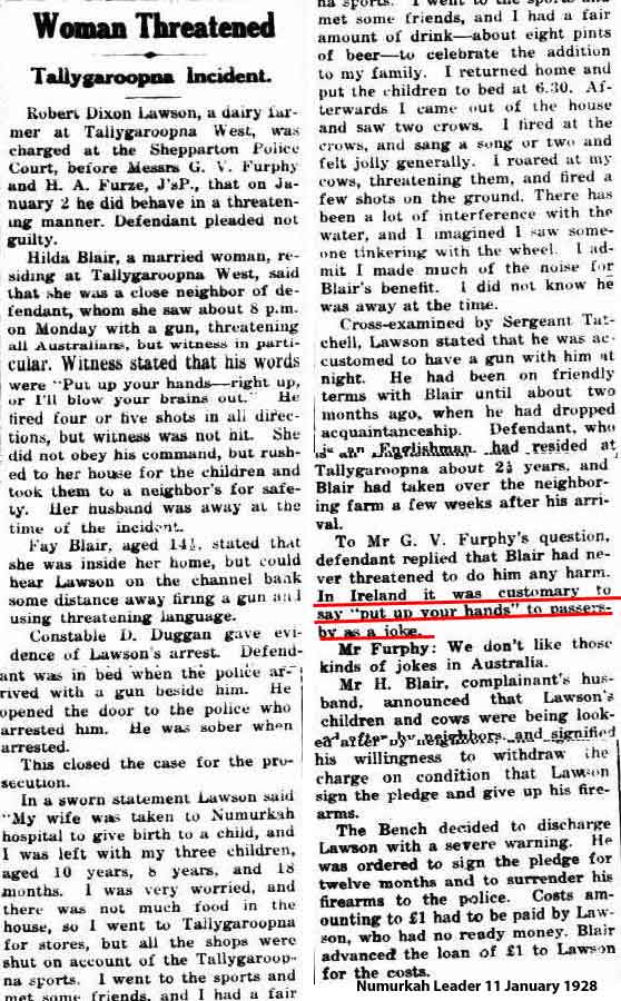 1934 Feb 8, He sells up at Tallygaroopna. There was a good turnout for the auction, and everything sold at full market prices. He surrendered the lease on the farm as well.