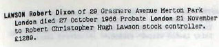 1966 Oct 27. Died in Morden Surrey