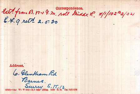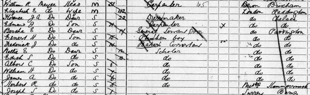 1911 census at 6 Glentham Rd, Barnes (same on MIC)