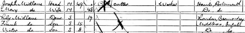 1911 census He is a Rifleman in KRRC Shorncliffe Camp, Elham in Kent (where he marries the next year)