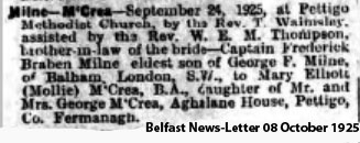 1925 Sep 24. Married in Co Fermanagh to Mary Elliot M'Crea
