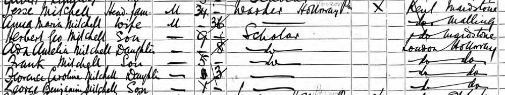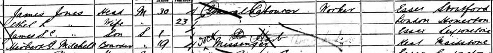 1901census at Leyton, where he is a boarder while working as a dock messenger