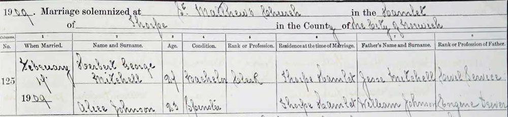 1909 Feb 17 Married Alice Johnson (1886–1981)