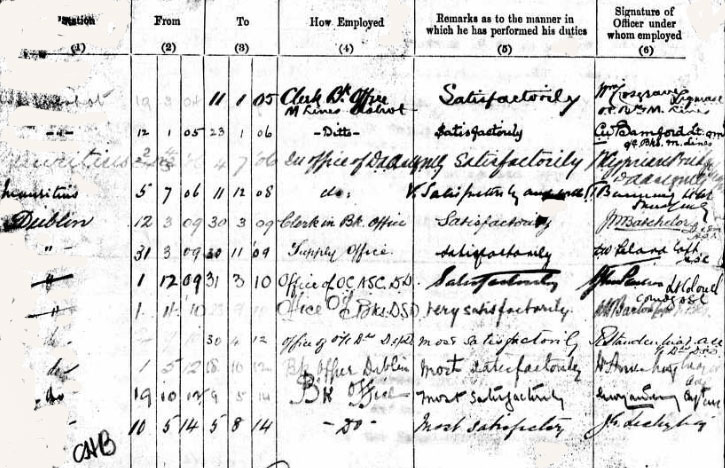 He seems to have spent at least 6 years in Dublin 1909 to 1914 with ASC