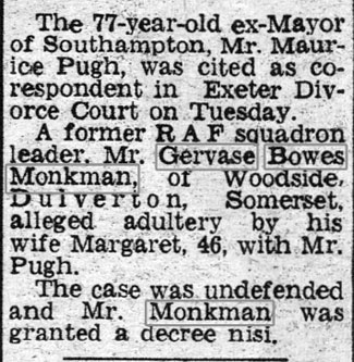 1924 Divorce Court File: 5246. Appellant: Gladys Annie Monkman. Respondent: Gervase Bowes Monkman. Type: Wife's petition for divorce