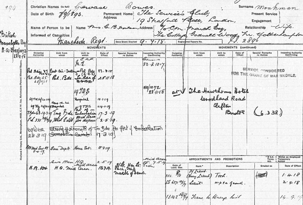 1919 Sep 14. Transferred to unemployed list Lt G B Monkman