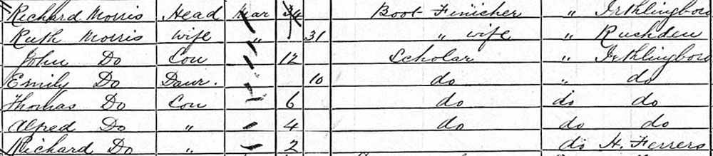 1881 census at Corporation Buildings, Higham Ferrers, Northamptonshire