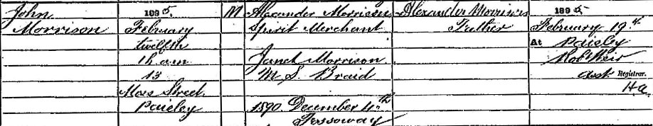 1895 Feb 12. Born Paisley, Renfrewshire, Scotland