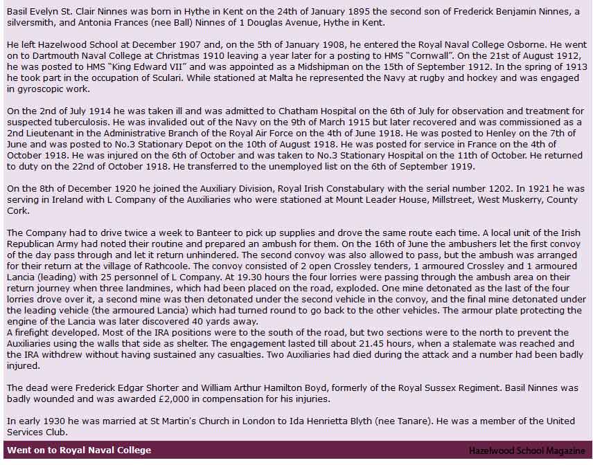 The dead were Frederick Edgar Shorter and William Arthur Hamilton Boyd, formerly of the Royal Sussex Regiment. Basil Ninnes was badly wounded and was awarded £2,000 in compensation for his injuries.