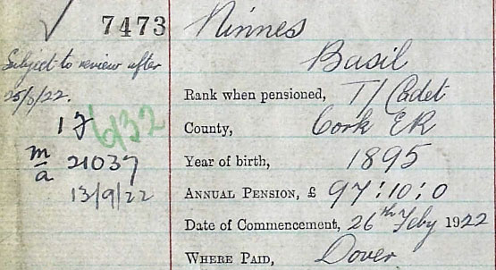 1922 Feb 26. Pension paid for 6 months