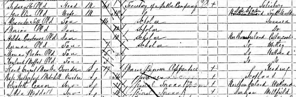 1891 census at Wallsend, Northumberland
