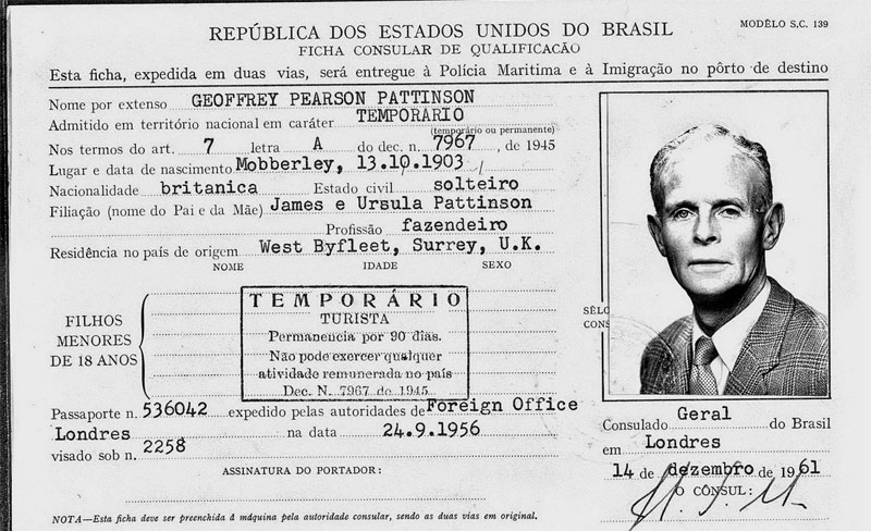 1957 Jan 12. Travels by ship to Las Palmas. He is a divorced farmer from Great Honlenby, Colchester