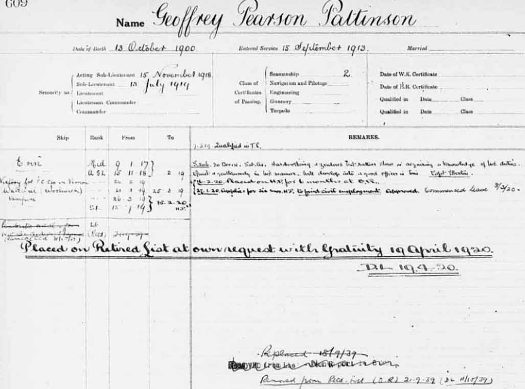 1922 Jul 5. Sub-Lieuts. (retd.) to be Lieuts. (retd.): — Geoffrey P. Pattinson.