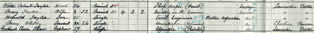 1901 census at 107, Bradford Arms, Bradford Street, Bolton