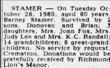 1980 Oct 28 Died Richmond, British Columbia, Canada