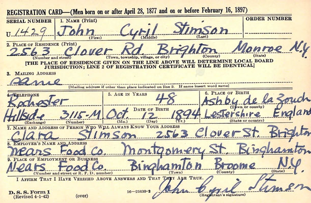 1893 Oct 12. Born Ashby de la Zouch. Registered as Jack Cecil Stimson
