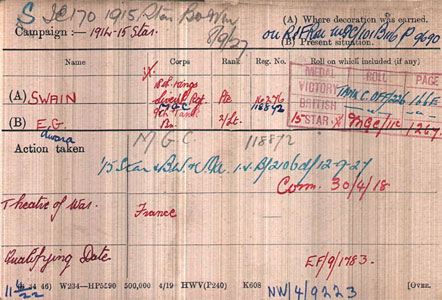 1920 Dec 16. Tank Corps. The undermentioned temp. 2nd Lts. relinquish their commissions on completion of service and retain the rank of 2nd Lt . E.G.Swain