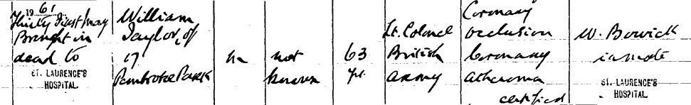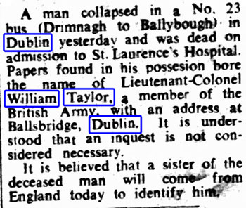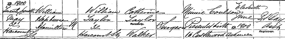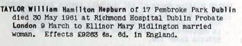1900 May 24. Born Dublin William Hepburn H Taylor. Son of a Dublin Surgeon