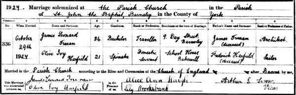 1927 Oct 27. He marries again to Olive Ivy Harfield in Barnsley