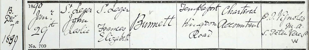 1889 Dec 7. Born John Leslie St Leger Bunnett at Hampstead. London