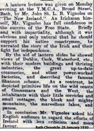 John Vignoles was running a repertory theatre company in Barnstaple and his son Reginald joined him there for maybe a year or two. John Vignoles had a varied career and was at one time Aide de Camp to the Governor of Malta, an Editor of a newspaper in Bath/Bristol. He also worked as a Clerk in the Admiralty (probably 1964). He also had links with Scotland (Crookshank?) and used to hill walk in the Highlands.