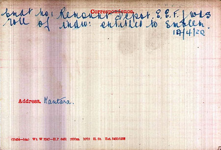 1920 Dec 15. Joined ADRIC with service no 1262. Posted to E Coy