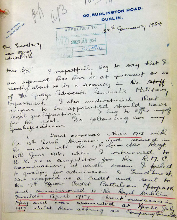 1924 Jan 28. Tried unsucessfully to get a legal job in the British Army