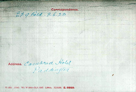 1923 Jun 20. Married at Holy Trinity Church, Paddington. Albert Henry (bachelor), canteen manager, to Elizabeth Jane Burgess (widow) both of Cambria Hotel, Chilworth Street ( advert gives 6, Chilworth Street, London W2). It would seem that both Albert and Elizabeth were joint proprietors of the Cambrian Hotel.