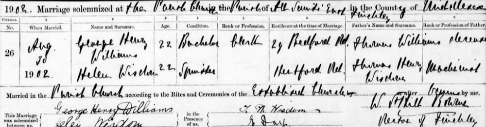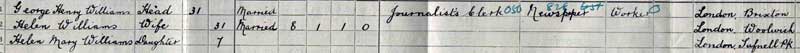 1901 census A boarder at 75, Windsor Road, Islington. With Helen Wisdom