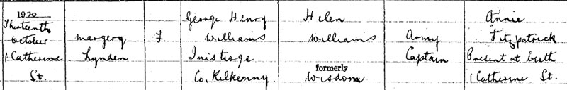 1920 Oct/Dec His daughter "Margery Lynden Williams " born at Waterford