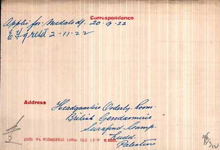 1922 Mar 20. Joined the British Gendarmerie section of the Palestine Police as a Sergeant.
