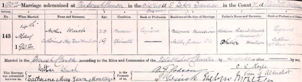 1881 At Hatfield His mother was Charlotte Isabella Joanna Watson-Taylor and his father William Henry Winch
