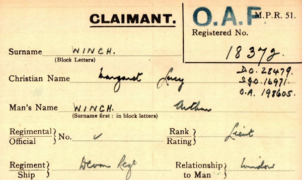 1918 Feb 23. Special Appointment. (Graded for purposes of pay as a Staff Lt., 3rd Cl.)— Lt. A. Winch, Devon. R., Spec. Res., and to be seconded. He was appointed Divisional Salvage Officer of 9 Division, graded as Staff Lt.