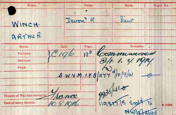 1917 Nov 17. Devon. Regt. Lt. A. Winch, Spec. Res., to be actg.Capt. whilst comdg. a Co.